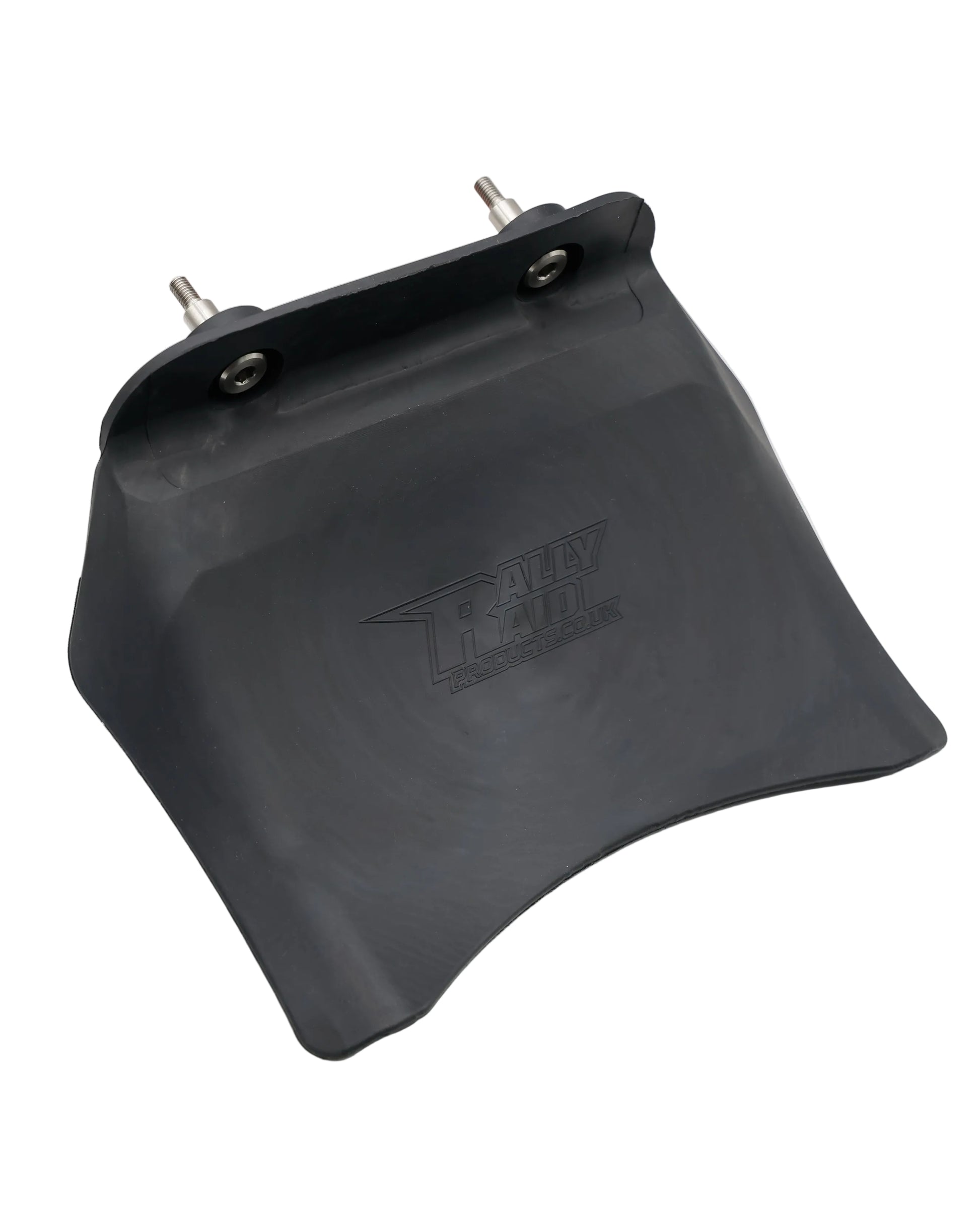 This custom moulded rubber mudflap designed and build in house will screw directly to the threaded holes under the rear mudguard, and is designed to prevent mud and road spray from building up around the rear shock and lower mount bearing.